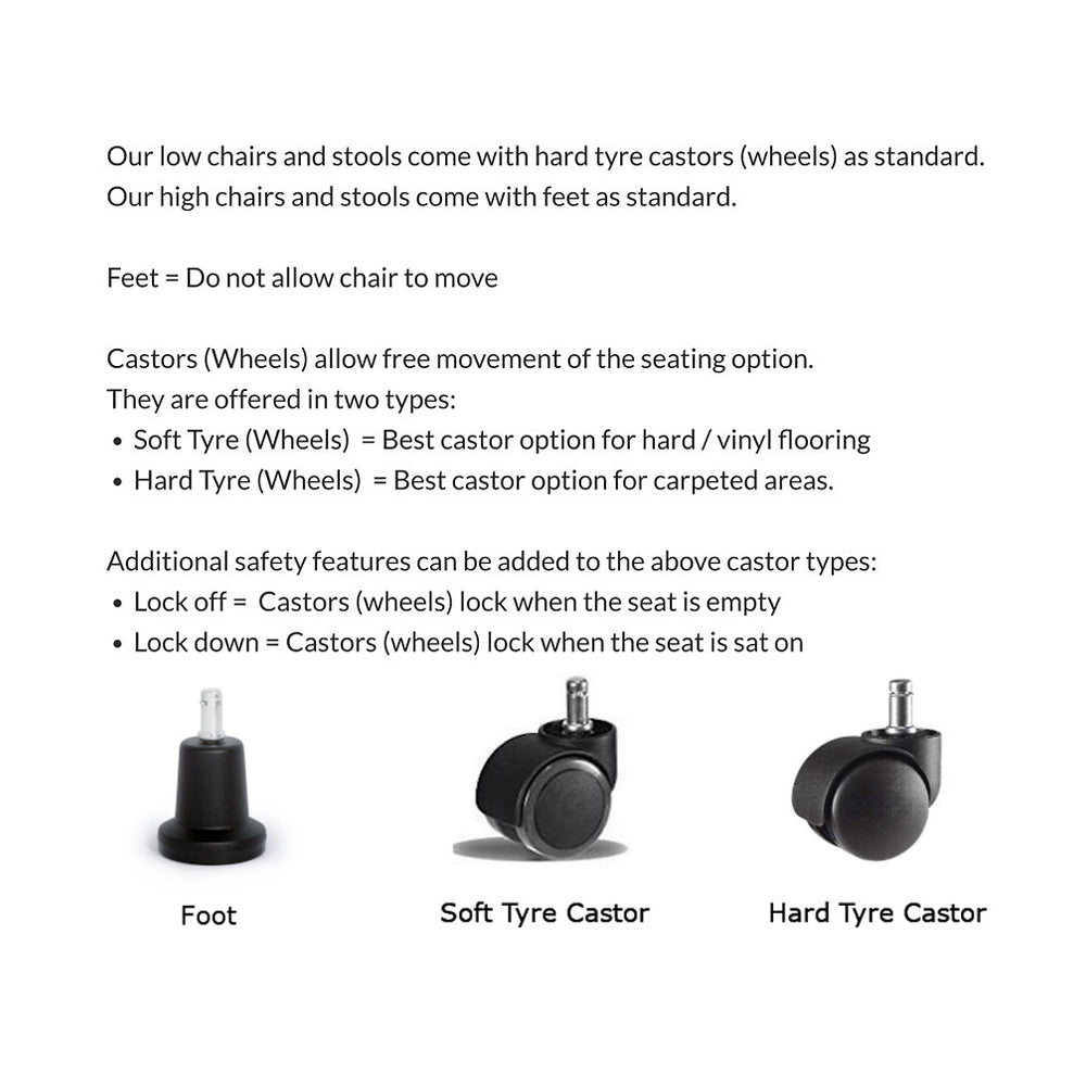 Our high chairs come with feet as standard. Castors incur a price uplift